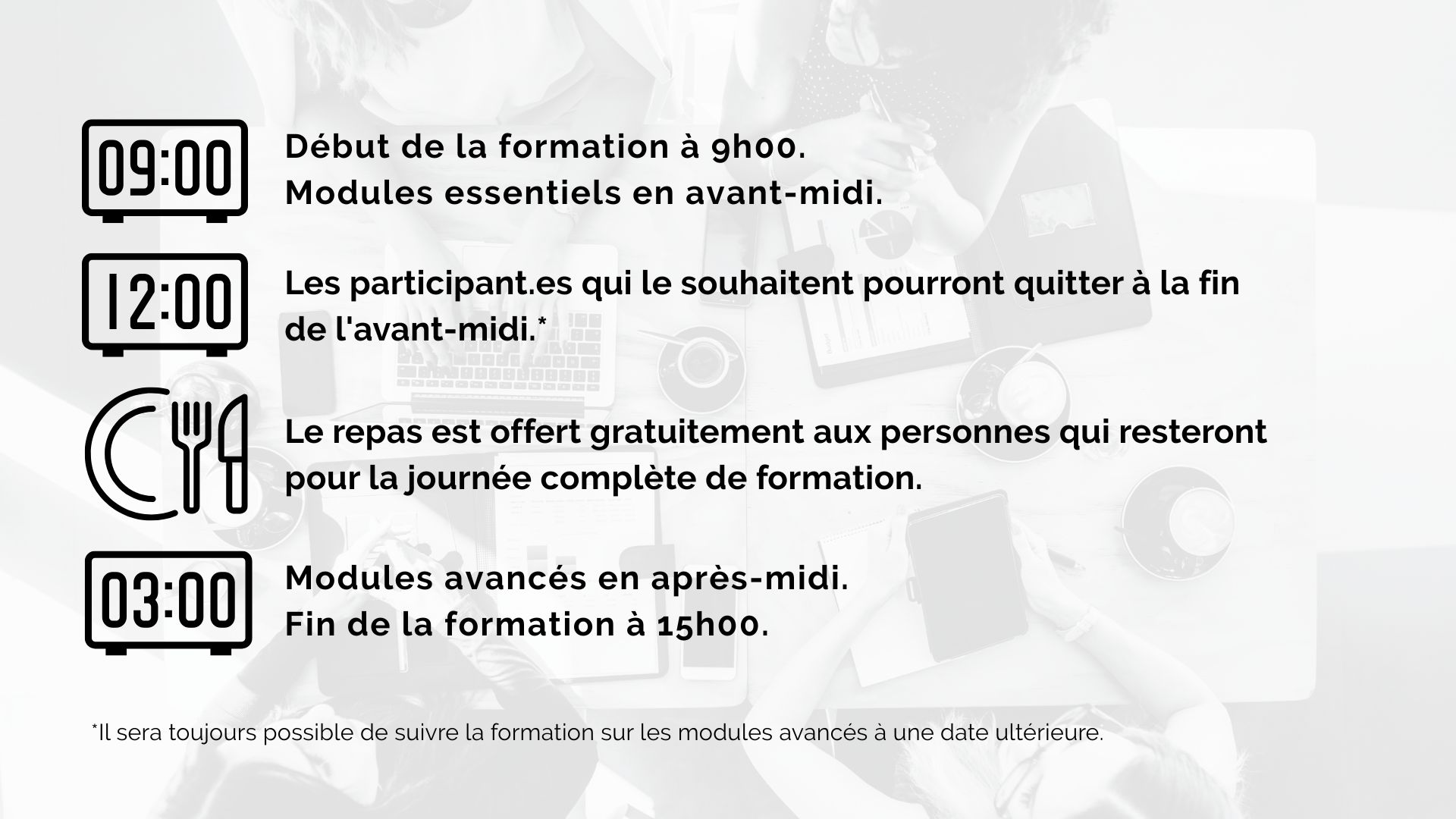 Nous offrons généralement 5 formations par année, une par MRC du Centre-du-Québec.