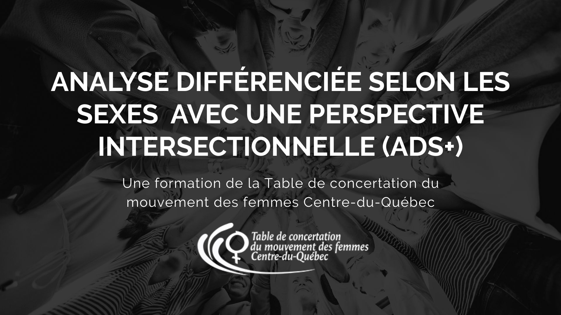 Nous offrons une conférence d'introduction à l'ADS+ qui permet aux participant.es d'apprendre ce qu'est l'ADS+ et de découvrir les concepts de base du sexisme et de l’intersectionnalité. Cette conférence d'une heure est une amorce intéressante à la formation ADS+. Elle peut être donnée lors d'une AGA, d'une activité de réseautage, d'une présentation à un groupe, etc.
